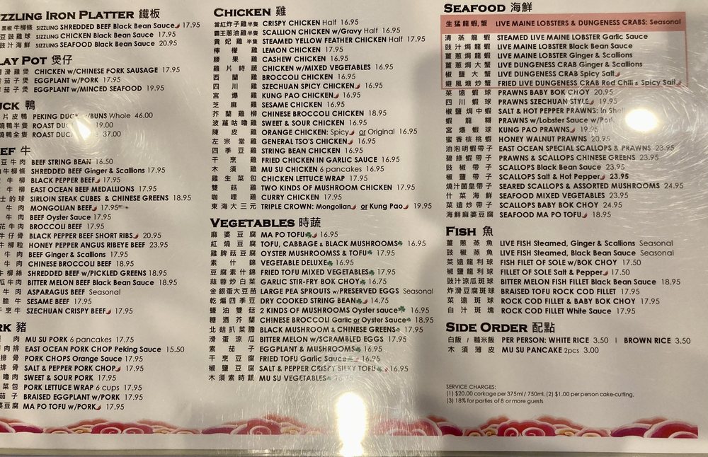 East Ocean Seafood Restaurant Menu (Update 2025)